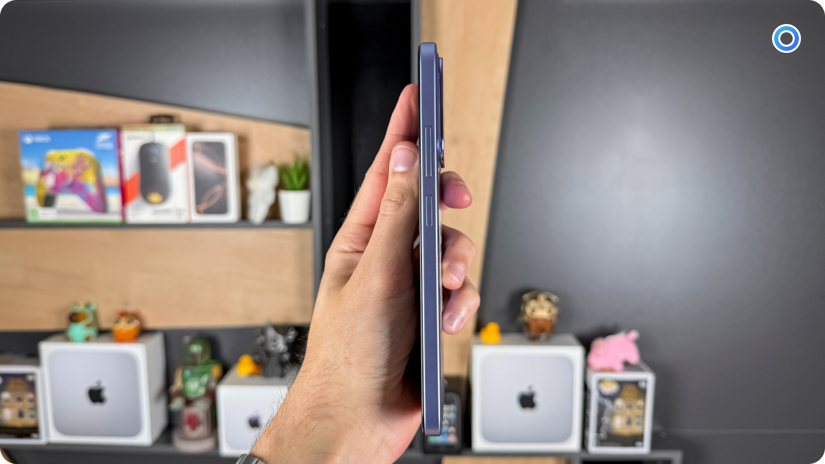 Перед нами классический «кирпичик для контента»: корпус и рамка из пластика, защита от брызг IP64, вес около 205 г. В руке лежит уверенно, но это точно устройство «двумя руками» — одной управлять сложно. Лоток тройной: две nano-SIM плюс microSD одновременно, что редкость в 2025 году и жирный плюс для бюджетника. Есть 3,5-мм джек и даже FM-радио через наушники — для этой цены отличный набор. Из нюансов — блок камер с четырьмя «окнами», по факту рабочих модулей два; и характерный для класса «топорный» виброотклик.
