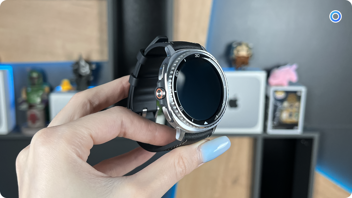 Дисплей 1,34 дюйма — чуть меньше, чем у обычных Watch 8, зато с отличной яркостью до 3000 нит. Разрешение высокое, картинка чёткая и насыщенная. Разрешение 438×438 даёт чёткую картинку, Always-On работает корректно. Сапфировое стекло спасает от царапин. Вживую диагональ не кажется маленькой, а безель берёт на себя часть управления, разгружая сенсорный экран.