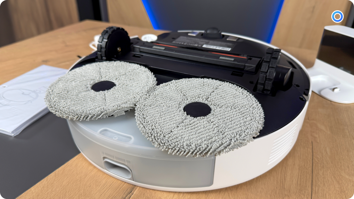 Корпус классический круглый с низким профилем, крышка открывает доступ к контейнеру и фильтру. Снизу — турбощётка, выдвижная боковая щётка и узел мопов для влажной уборки. Резиновая защита по периметру смягчает касания мебели, а лидар в «башне» стабильно держит карту даже при приглушённом освещении. Стыковка на док-станцию происходит уверенно, робот не «ищет» базу по десять раз.