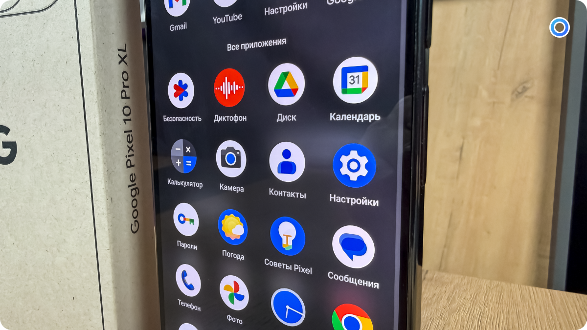 Super Actua LTPO OLED-дисплей с диагональю 6,8 дюйма — один из лучших, что ставила Google. Яркость достигает 3300 нит, картинка насыщенная, но не перенасыщенная, а частота 120 Гц делает всё движение идеально плавным. Однако при минимальной яркости заметен ШИМ около 240 Гц — чувствительные пользователи могут замечать лёгкое мерцание. Это не критично, но хотелось бы видеть вариант с 480 Гц. Цветопередача точная, HDR-видео на YouTube и Netflix выглядит отлично.