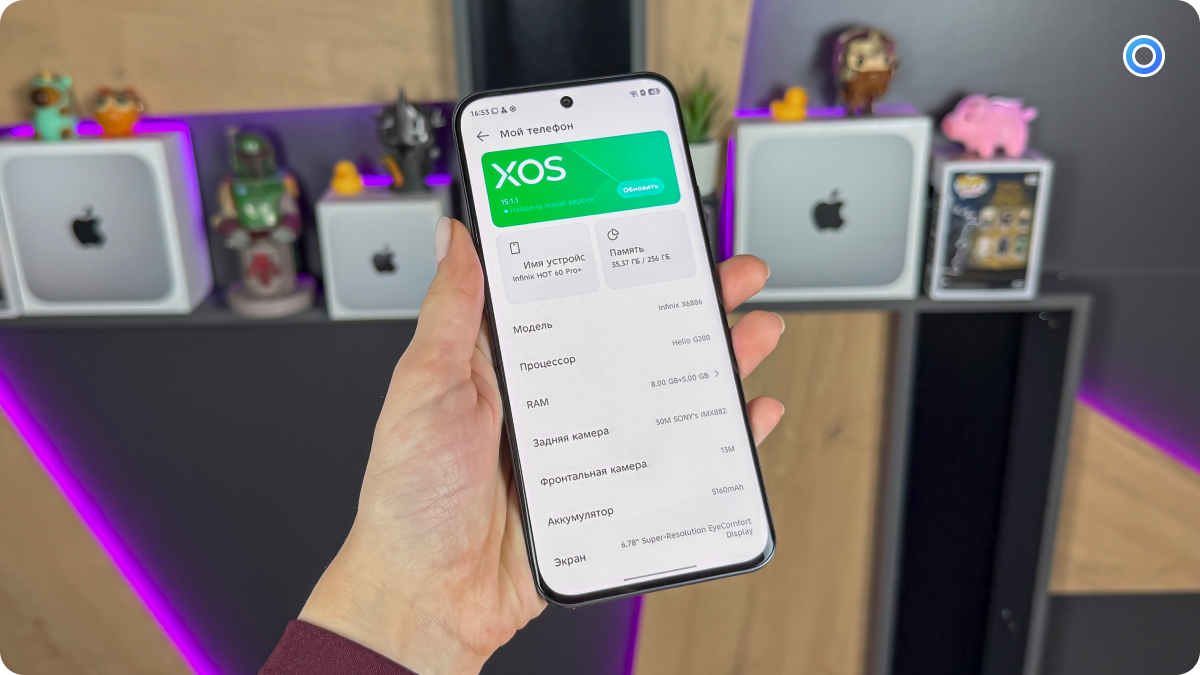 В Hot 60 Pro+ ставка сделана на другие ощущения. Он заметно тоньше, легче и держится в руке совсем иначе. За счет алюминиевой рамки появляется та самая жесткость корпуса, которую обычно получаешь в более дорогих устройствах. При этом габариты остались почти такими же, поэтому переход между моделями ощущается только в реальном использовании — Pro+ буквально «воздушный» по сравнению с более массивным собратом.