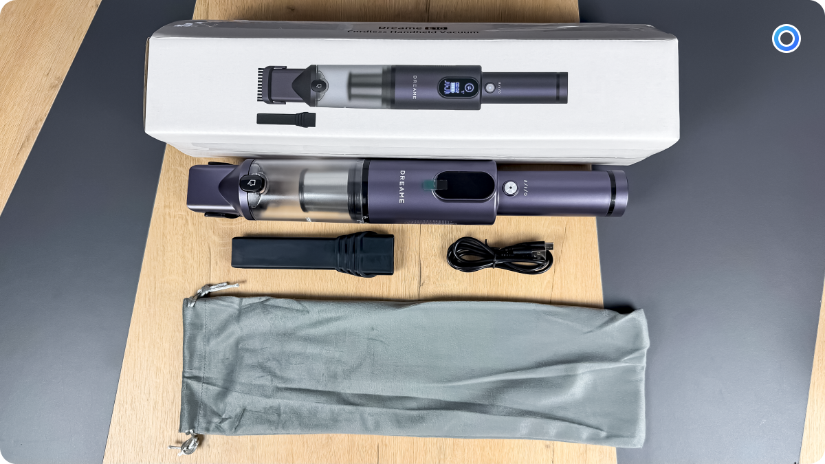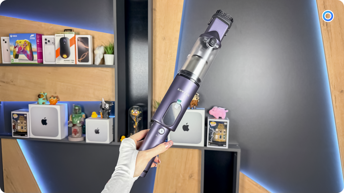 Dreame E10 выполнен в компактном форм-факторе и весит всего 0.5 кг. Его удобно держать одной рукой, а небольшой корпус позволяет дотягиваться до труднодоступных мест: между сиденьями в машине, под столом, в уголках мебели. Матовый корпус не скользит, кнопка управления расположена под большим пальцем, а пластиковый контейнер снимается одним движением. Продуманный дизайн делает устройство практичным для повседневных задач, когда нужна быстрая уборка без подготовки.