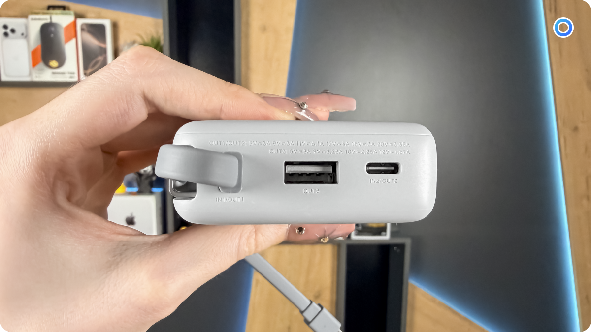 Модель на 20 000 мАч уступает по мощности, ограничиваясь 22.5 Вт, но компенсирует это запасом энергии. Она отлично подходит для зарядки нескольких смартфонов, наушников или других гаджетов в течение дня, особенно в поездках или командировках.