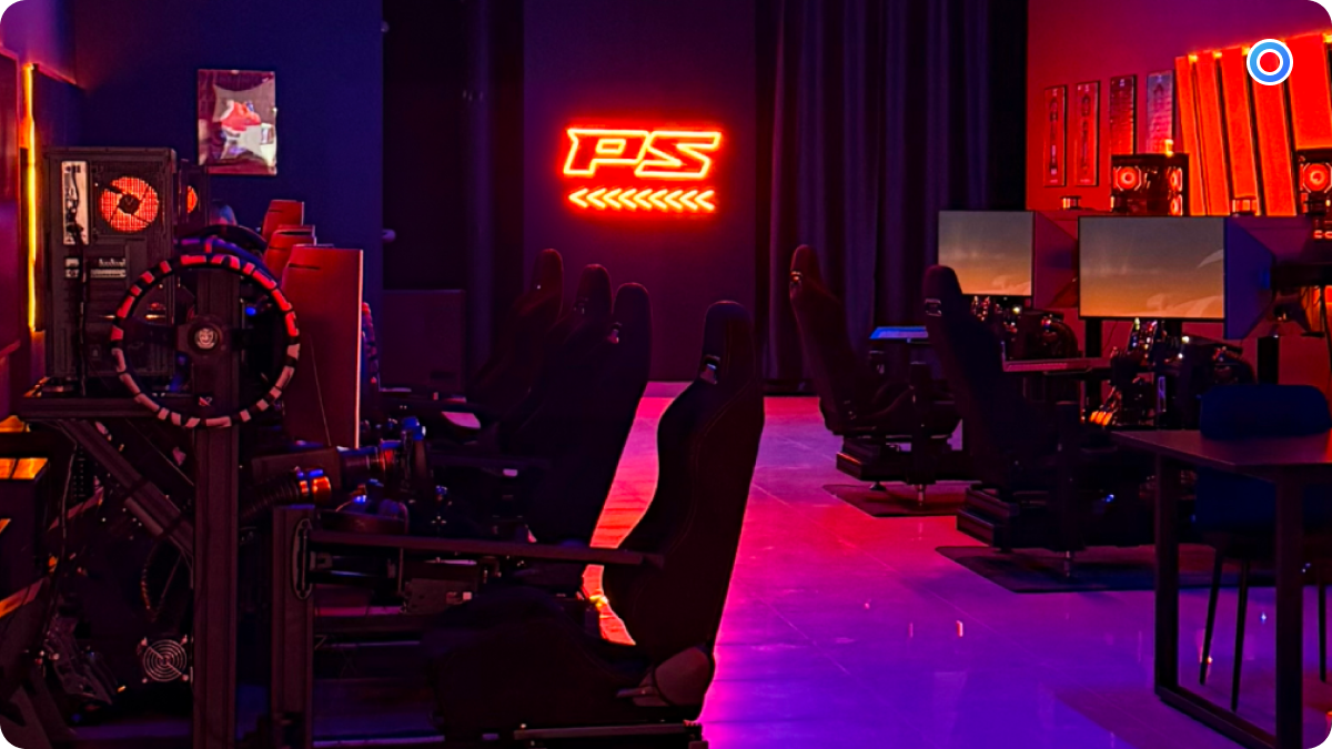 Пространство рассчитано сразу на несколько форматов отдыха. Всего доступно шесть полноценных мест, благодаря чему сюда можно прийти как одному, так и компанией. Два из них — VIP-места с подвижными платформами, которые передают ускорения, торможения и боковые перегрузки. Симуляторы собраны на профессиональном уровне и подойдут как для первых заездов, так и для уверенных симрейсеров, которым важна точность и стабильность.