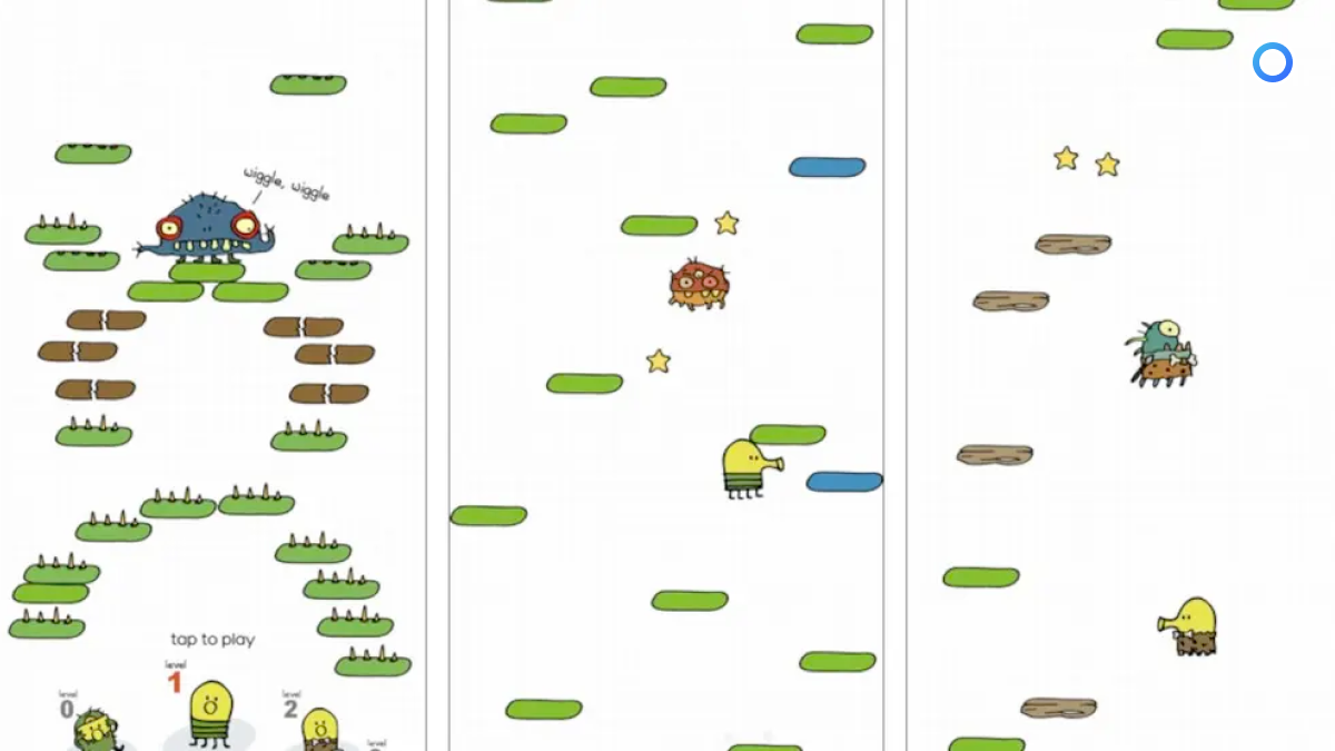 Один из первых примеров бесконечной игры. Задача проста — прыгать всё выше, пока платформы медленно исчезают внизу. Чем дальше, тем сложнее, и остановиться невозможно.