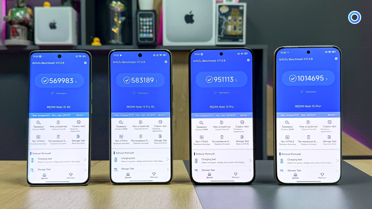 Redmi Note 15 Pro на Helio G200-Ultra набирает чуть больше — примерно 588 тысяч баллов. Разница минимальна, и в реальности это ощущается как более отполированный опыт. Интерфейс реагирует быстрее, многозадачность даётся спокойнее, обработка фото и видео проходит увереннее. Это вариант для тех, кто пользуется смартфоном активнее среднего, но не хочет переплачивать за избыточную мощность.