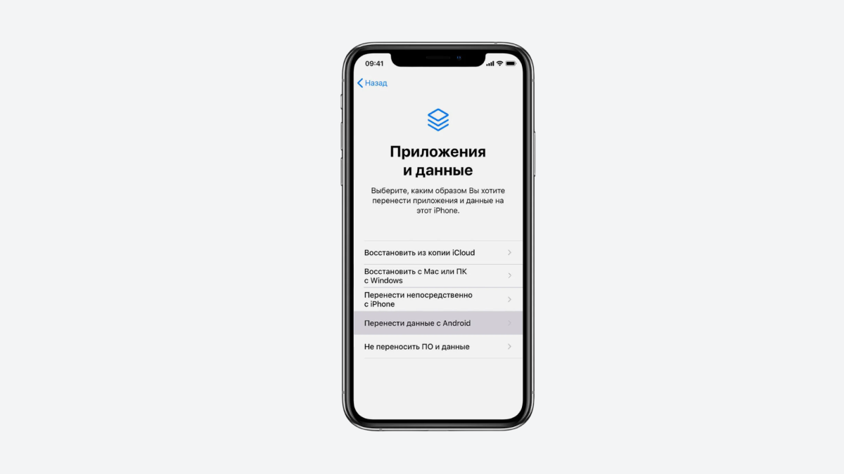 — На iPhone во время первичной настройки выберите пункт «Перенести данные с Android».