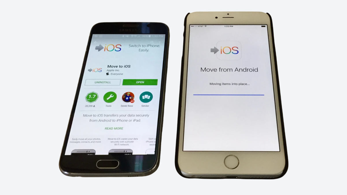 — На Android-смартфоне откройте Google Play, скачайте приложение «Перенос на iOS», установите его и запустите.