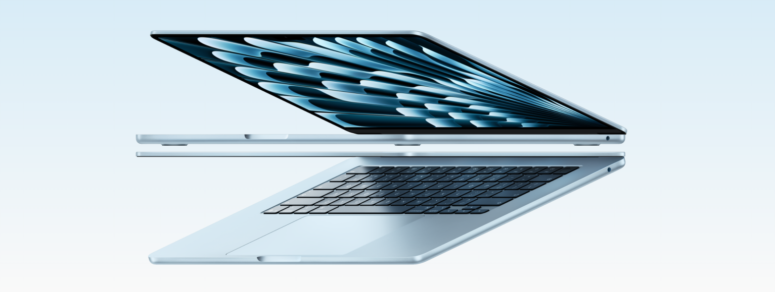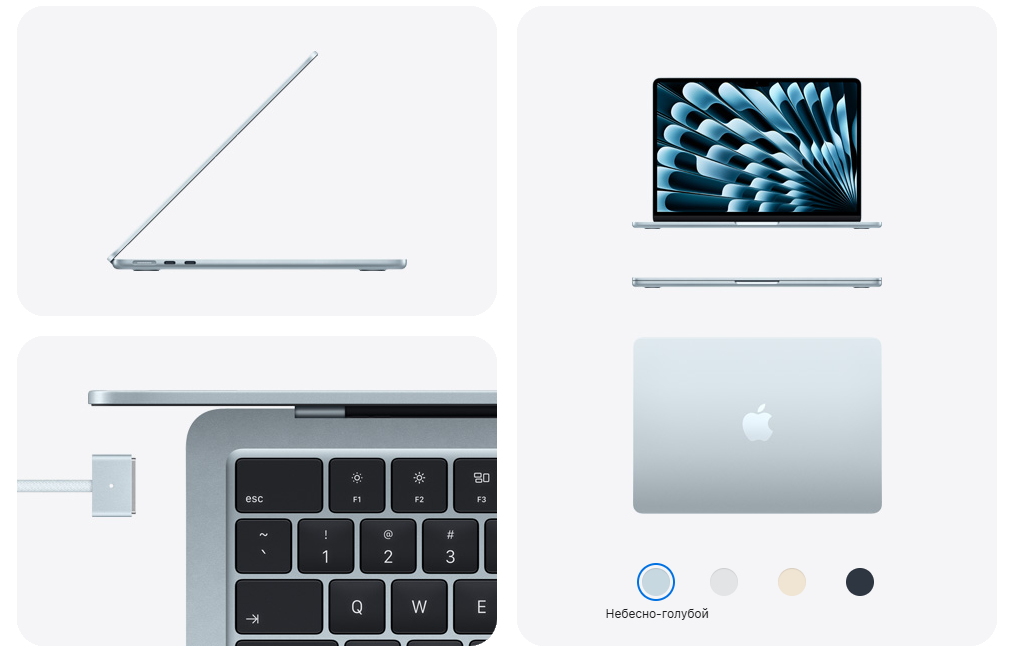 MacBook Air 15.3" 2026 M5 выполнен в тонком и легком металлическом корпусе, который подчеркивает фирменный минималистичный стиль Apple. Ноутбук весит всего 1.23 кг и имеет толщину 11.3 мм, поэтому его удобно брать с собой на работу, учебу, в поездки и использовать каждый день.