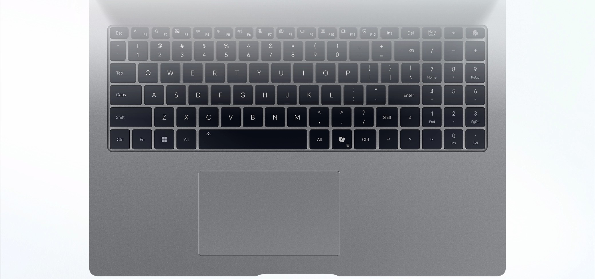 Полноразмерная клавиатура оснащена цифровым блоком и подсветкой клавиш, что удобно для работы с таблицами и в тёмное время суток. Тачпад крупный и отзывчивый, подходит для точной навигации и жестов Windows 11.
