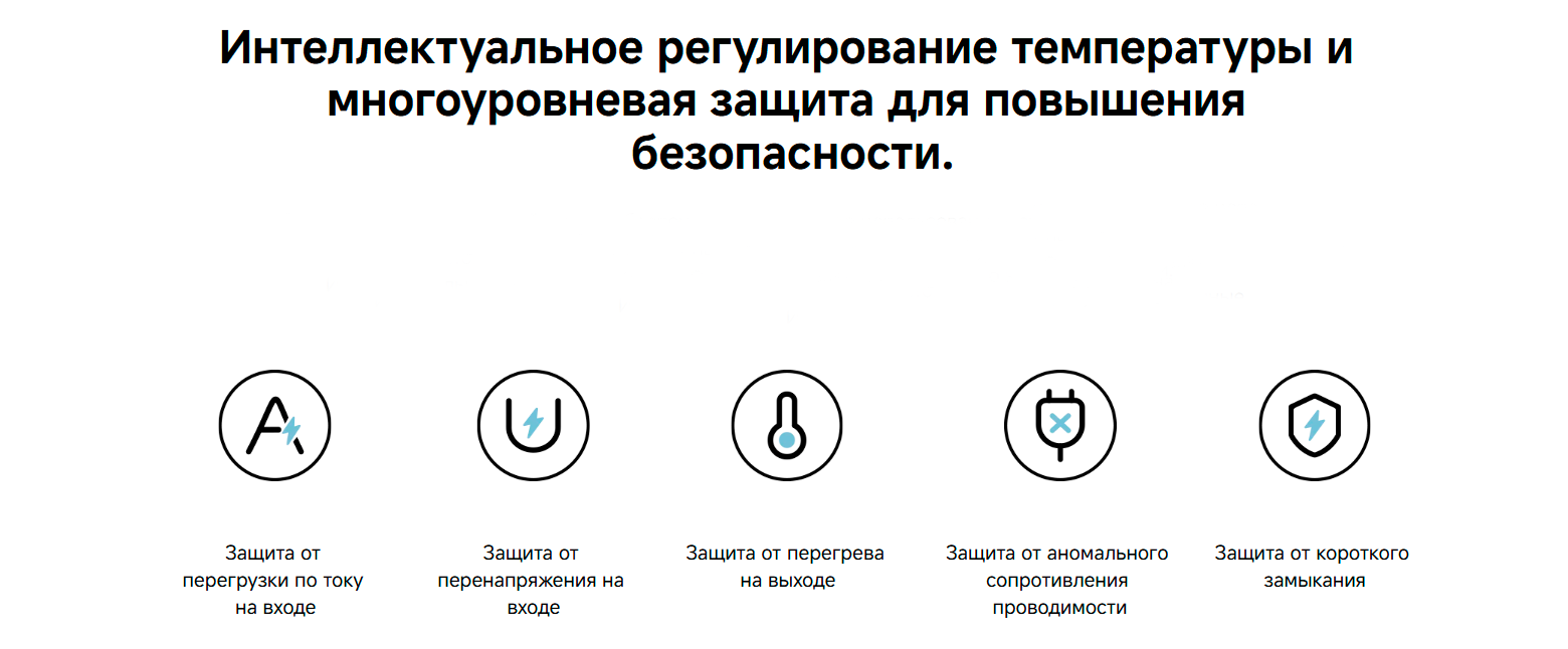 Особенности от короткого замыкания, от перегрева, от перегрузки, стандарты быстрой зарядки Power Delivery, Programmable Power Supply, Quick Charge