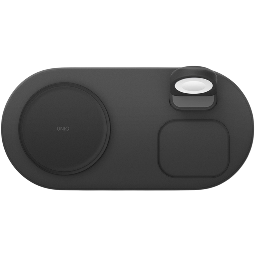 Uniq Aereo Mag – это компактная и удобная зарядная станция, позволяющая одновременно заряжать Apple Watch, AirPods Pro и iPhone, а также другие смартфоны. Корпус аксессуара сделан из качественного пластика и не скользит на любых ровных поверхностях, а компактные габариты подставки позволяют сэкономить место и избавиться от лишних проводов.