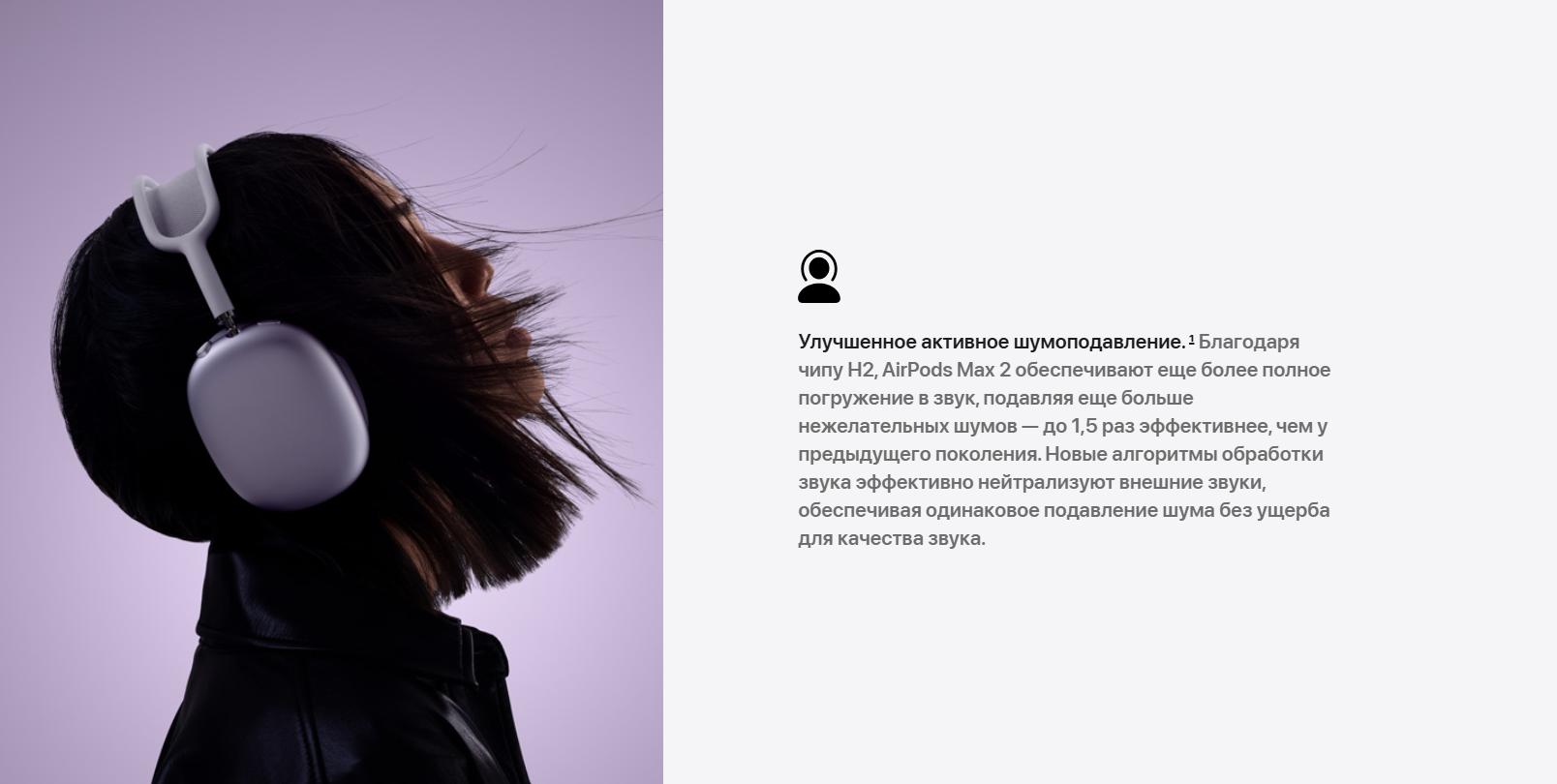 Система ANC эффективно снижает внешние шумы, позволяя полностью погрузиться в музыку или фильмы даже в шумной обстановке.