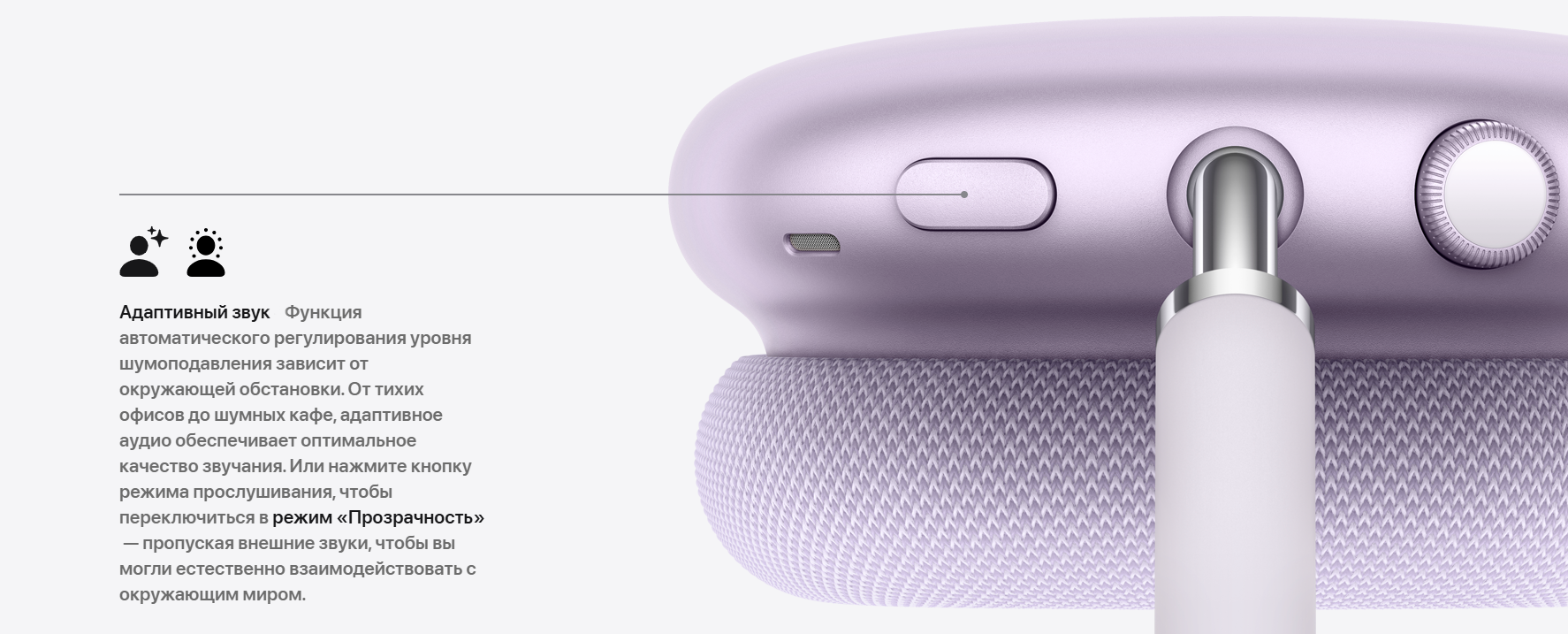 Режим прозрачности позволяет слышать окружающий мир без снятия наушников. Система из 9 цифровых микрофонов обеспечивает четкую передачу голоса во время звонков и видеосвязи.