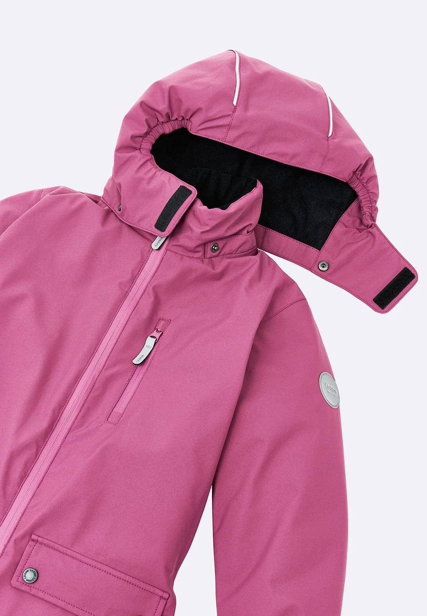 Особенности | манжета на резинке с флисом, отстегивается капюшон внутри с флисом регулируемый резинкой и застежкой велькро, светоотражающие вставки на капюшоне, защита подбородка, эластичные подтяжки, ветрозащитная планка внутри, флис на спинке, Wp молния, нагрудный карман на wp молнии, два боковых кармана с wp молнией и клапанам на кнопках, низ брючин усилен оксфордом, силиконовые штрипки |