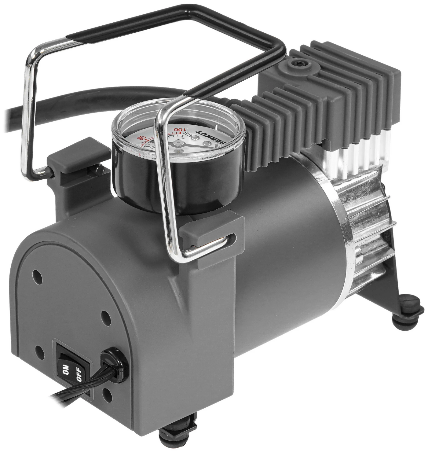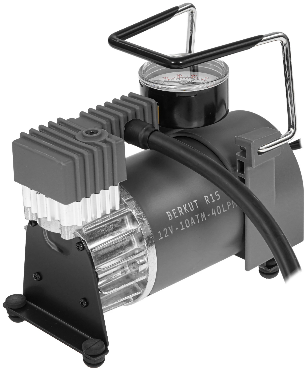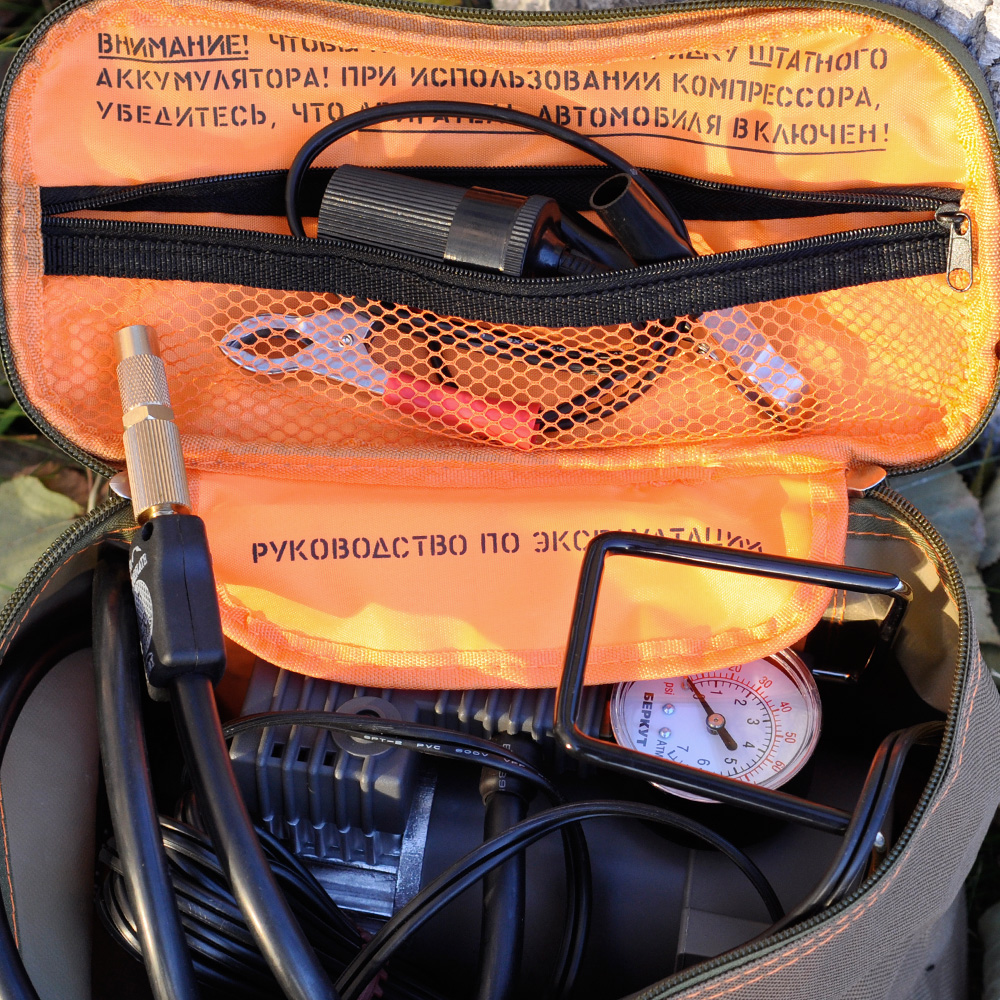 Berkut R15 выполнен в прочном сером корпусе и рассчитан на интенсивную автомобильную эксплуатацию. Использование поршневого кольца из фторопласта и встроенного плавкого предохранителя повышает ресурс компрессора и защищает его от перегрузок. Компактные габариты при весе 2,1 кг обеспечивают устойчивость и надёжную работу на любой поверхности.