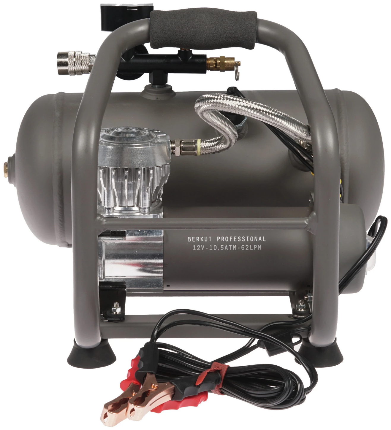 Компрессор подключается напрямую к клеммам аккумулятора автомобиля и работает от сети 12 В с потребляемым током до 30 А. Кабель питания длиной 2,4 м обеспечивает удобство подключения. Уровень шума до 85 дБ соответствует классу мощных компрессоров с ресивером. Berkut SA-06 подойдёт для внедорожников, коммерческого транспорта и задач, где требуется высокая производительность, запас воздуха и надёжность профессионального уровня.