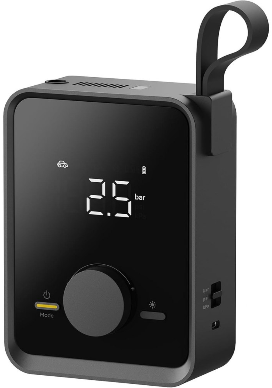 HOTO Air Pump Pro HOE0008GL выполнен в прочном чёрном корпусе и рассчитан на более интенсивное использование по сравнению с компактными моделями. Увеличенные габариты и вес 850 г обеспечивают устойчивость при работе, а встроенный манометр на корпусе позволяет контролировать давление без дополнительных приборов. Наличие встроенного фонаря делает компрессор удобным для использования в тёмное время суток и в дорожных условиях.
