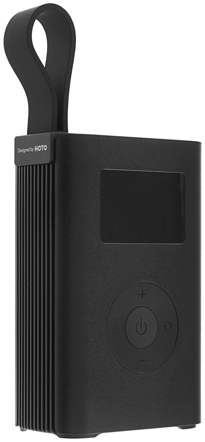 HOTO Air Pump HOE0011GL выполнен в компактном чёрном корпусе и рассчитан на удобное хранение в автомобиле или рюкзаке. Габариты 8 × 12,45 × 4,8 см и вес 520 г позволяют без труда брать компрессор с собой, а манометр, размещённый прямо на корпусе, упрощает контроль давления во время работы.