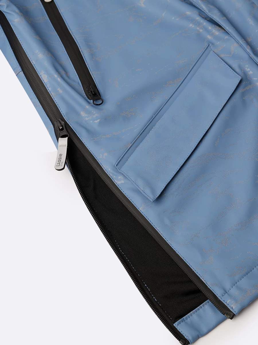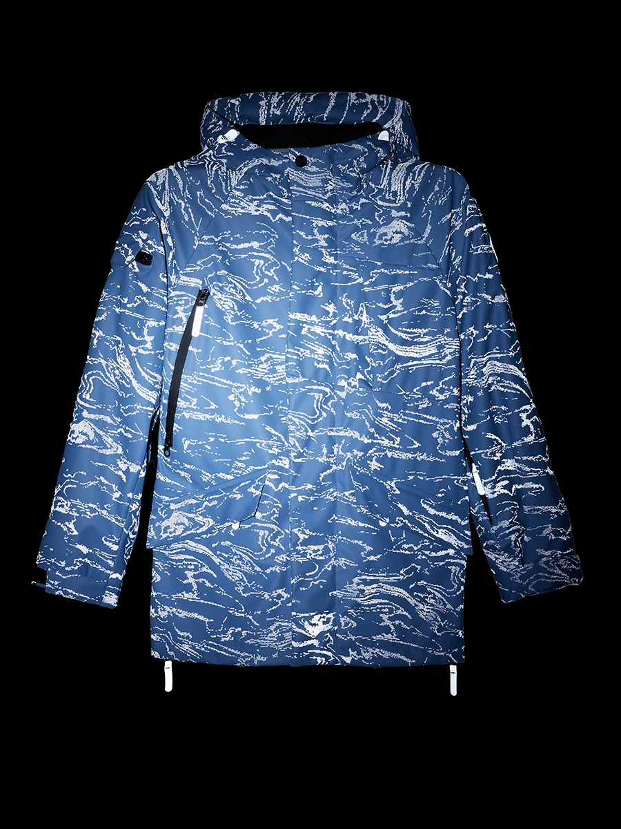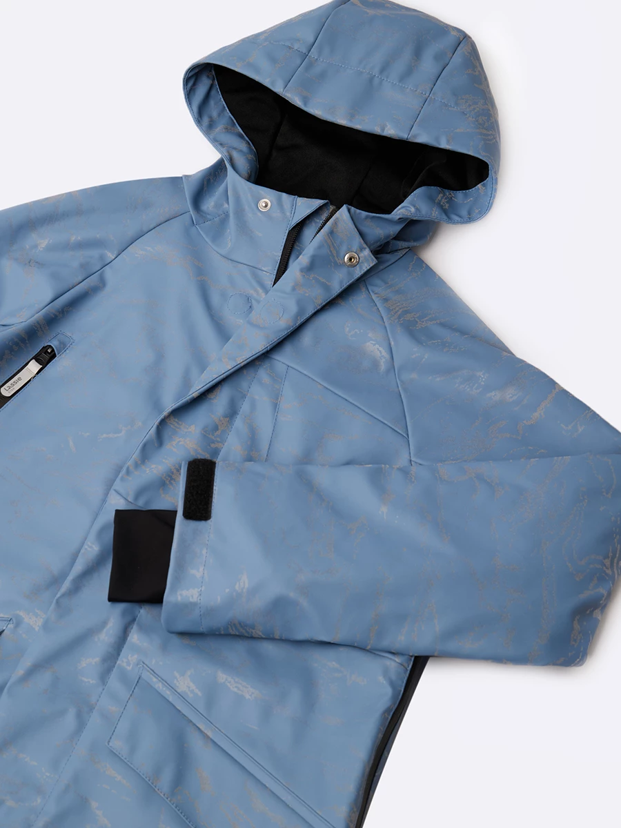 Особенности | дождевая куртка с светоотражающим принтом, все швы запаяны и водонепроницаемы, эластичные трикотажные манжеты, регулировка манжета на липучке, расширение по бокам на молнии, клапан для паропроводимости, внутрений карман на молнии |