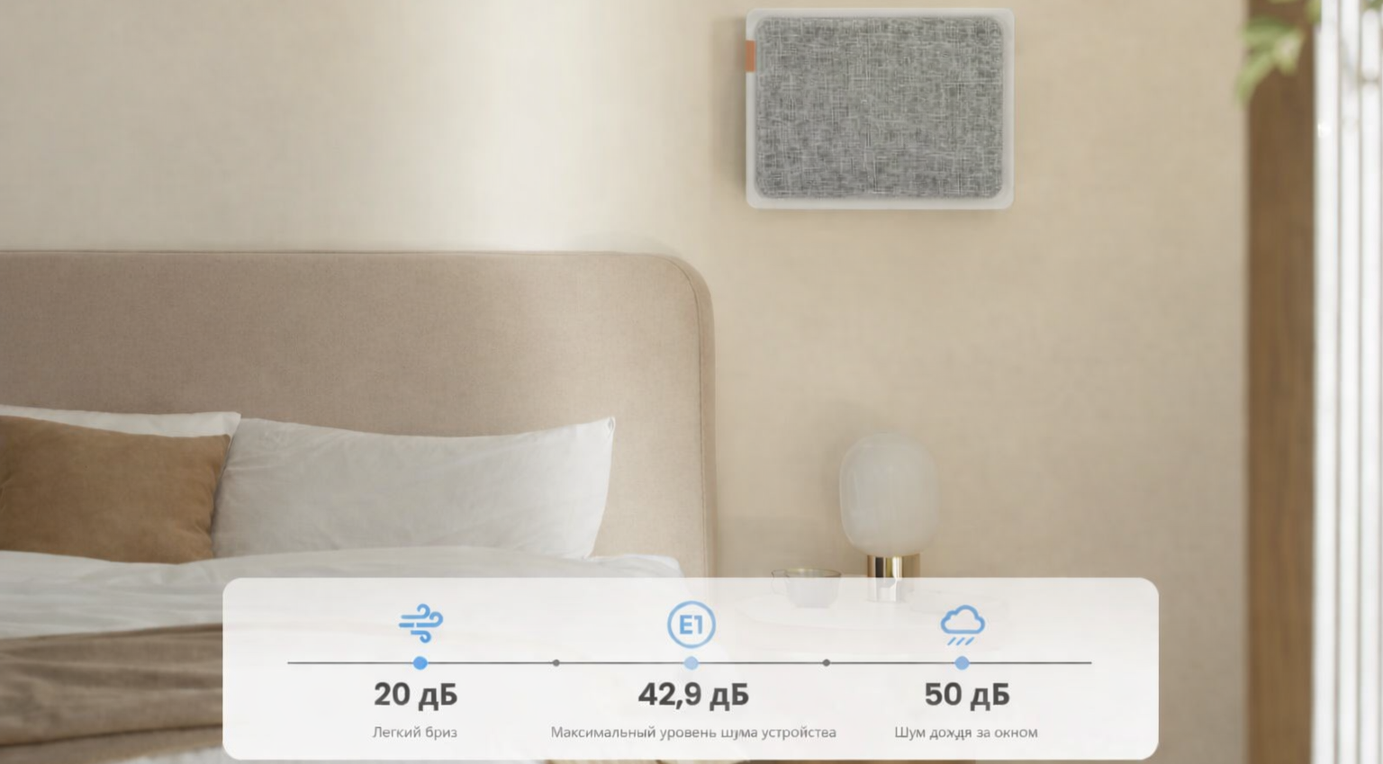 Smartmi Air Purifier E1 — компактный очиститель воздуха, рассчитанный на небольшие помещения. Устройство можно установить на пол, поставить на стол или закрепить на стене — формат позволяет вписать его в спальню, детскую или рабочее место. Корпус легкий и аккуратный, не занимает много пространства и не требует сложного монтажа.