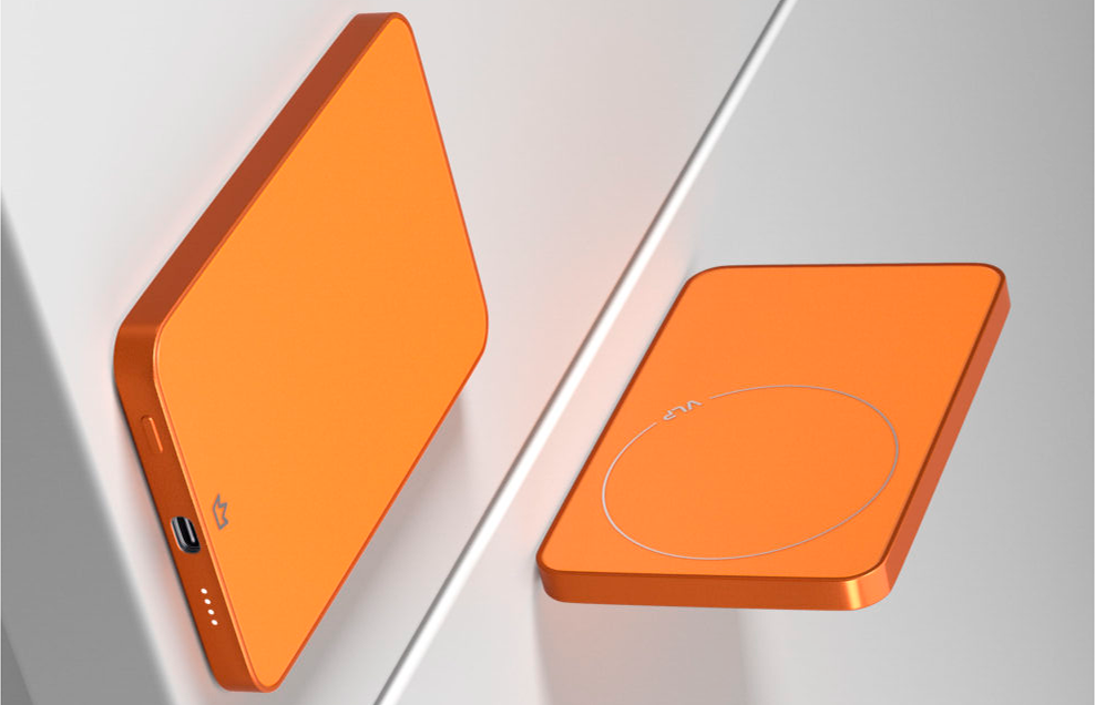 Портативный аккумулятор VLP Diamond Energy в оранжевом цвете сочетает компактный корпус и поддержку магнитной фиксации MagSafe. Подходит для ежедневного использования и поездок.