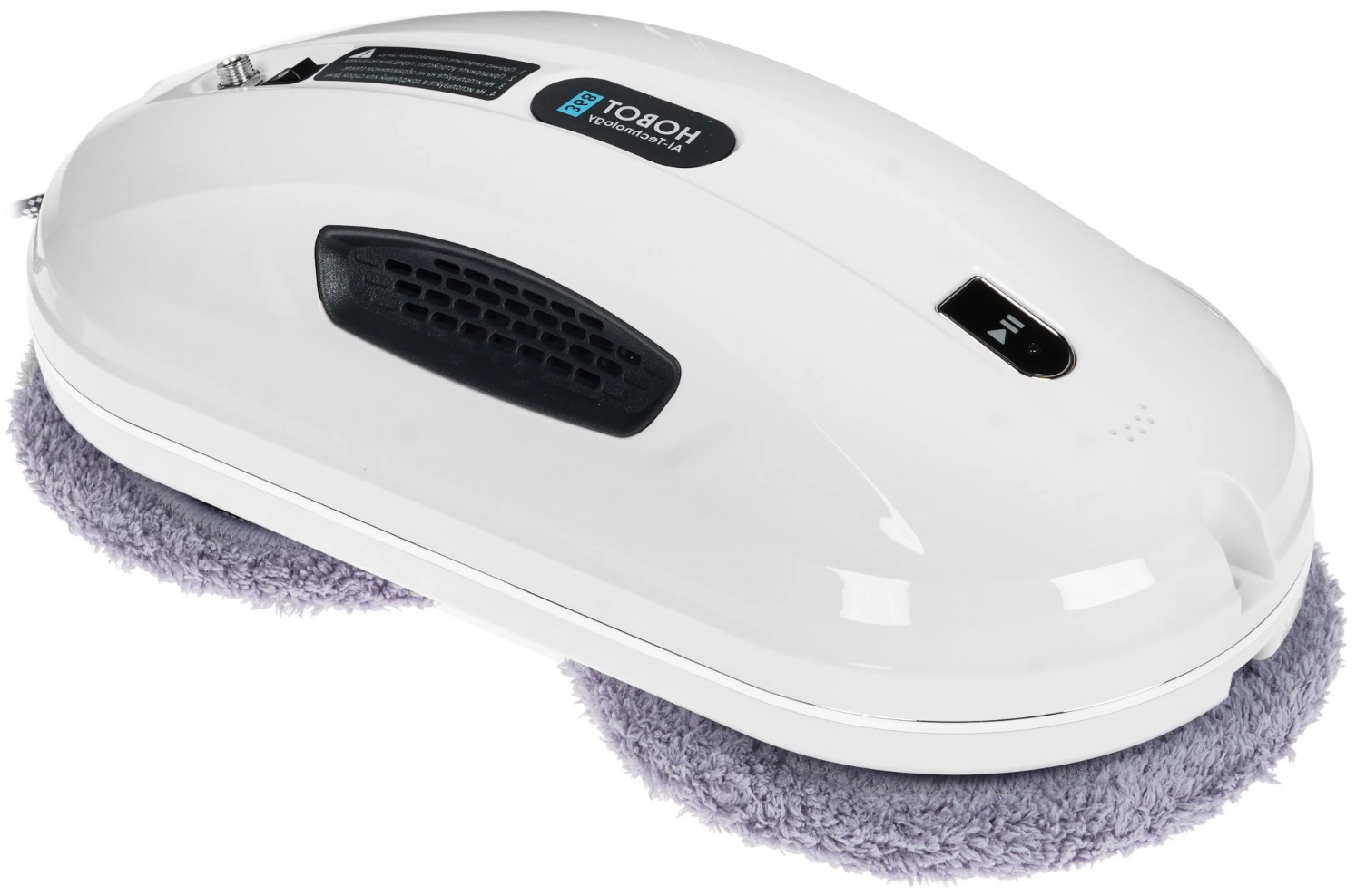 HOBOT-368 выполнен в компактном корпусе белого цвета с черными элементами. Устройство выглядит современно и аккуратно, а небольшие габариты и вес всего 0.94 кг делают его удобным для работы с окнами, зеркалами и другими стеклянными поверхностями.