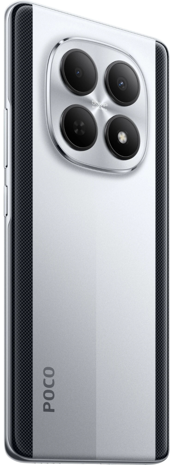 POCO M8 выполнен в тонком и легком корпусе толщиной всего 7,35 мм и весом 178 г. Смартфон удобно лежит в руке и не ощущается громоздким даже при длительном использовании. Пластиковый корпус практичен в повседневной эксплуатации, а серебристый цвет придает устройству аккуратный и современный вид. Степень защиты IP66 повышает устойчивость к пыли и брызгам воды, что добавляет уверенности в повседневных сценариях.