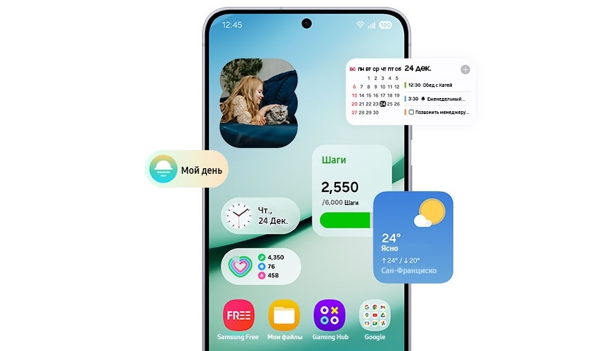 6,7-дюймовый Dynamic AMOLED 2X с разрешением 2340×1080 пикселей и частотой 120 Гц обеспечивает впечатляющую плавность и реалистичную цветопередачу. Технология Vision Booster автоматически подстраивает яркость под освещение, а поддержка HDR10+ раскрывает максимум деталей в тенях и светлых участках. Аппарат работает на Exynos 2400 — 10-ядерном чипе с нейросетевыми функциями Galaxy AI, которые ускоряют обработку фото, переводят текст в реальном времени и помогают в повседневных задачах.