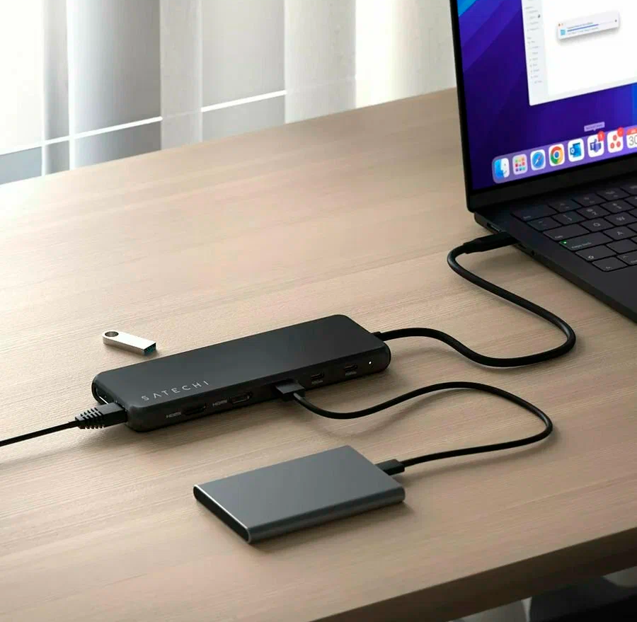 Satechi 13-in-1 USB-разветвитель предлагает 13 различных портов, включая USB 2.0, USB 3.0, HDMI, DisplayPort, Ethernet и мини-джек 3.5 мм, предоставляя отличные возможности для подключения различных устройств.