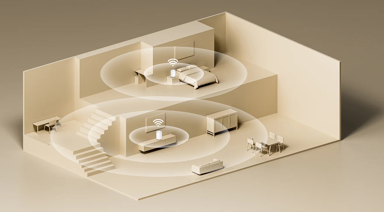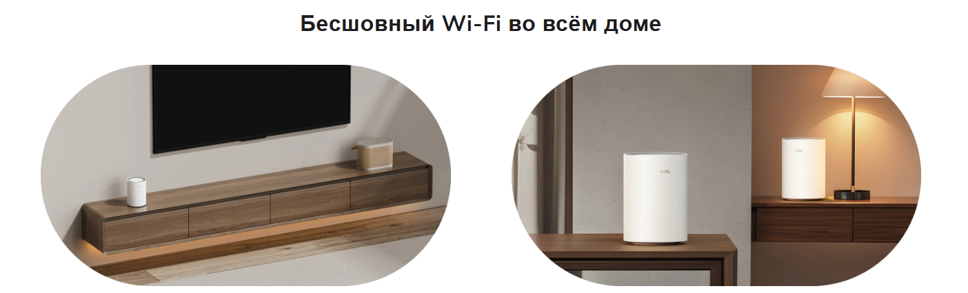 Два устройства объединяются в единую Mesh-сеть, обеспечивая плавное переключение между точками доступа и стабильный сигнал по всей площади. Это особенно удобно для квартир с несколькими комнатами или домов.