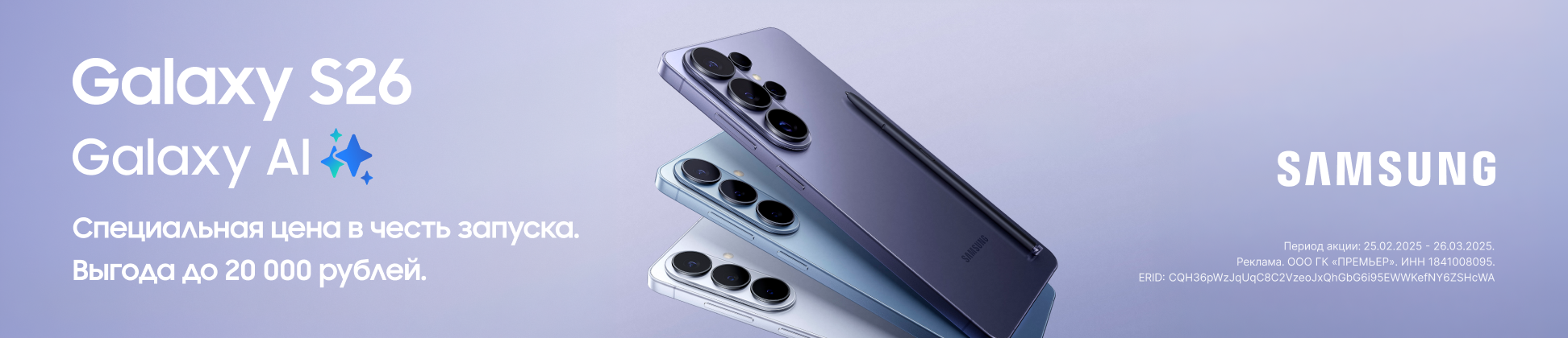 Рассрочка -1% Смартфон Samsung Galaxy S26 Plus 12/256 ГБ голубой CAU 0 107 990 руб. 109 990 В корзину Добавить в сравнение
